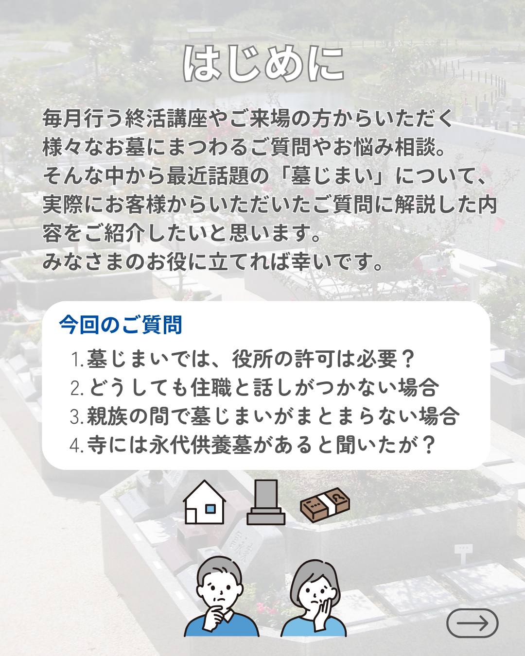「墓じまい」の質問。今回は4つの質問にお応えいたします。