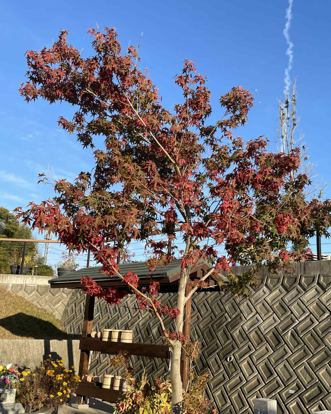 花壇墓所のシンボルツリーが徐々に赤く色付いて来ております。