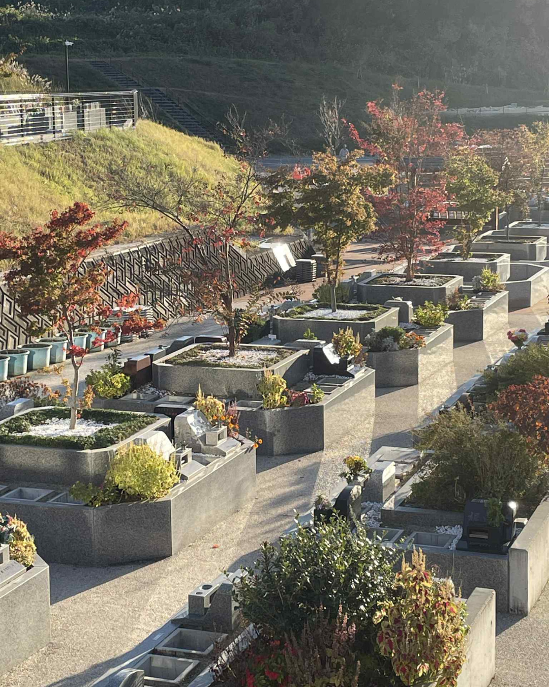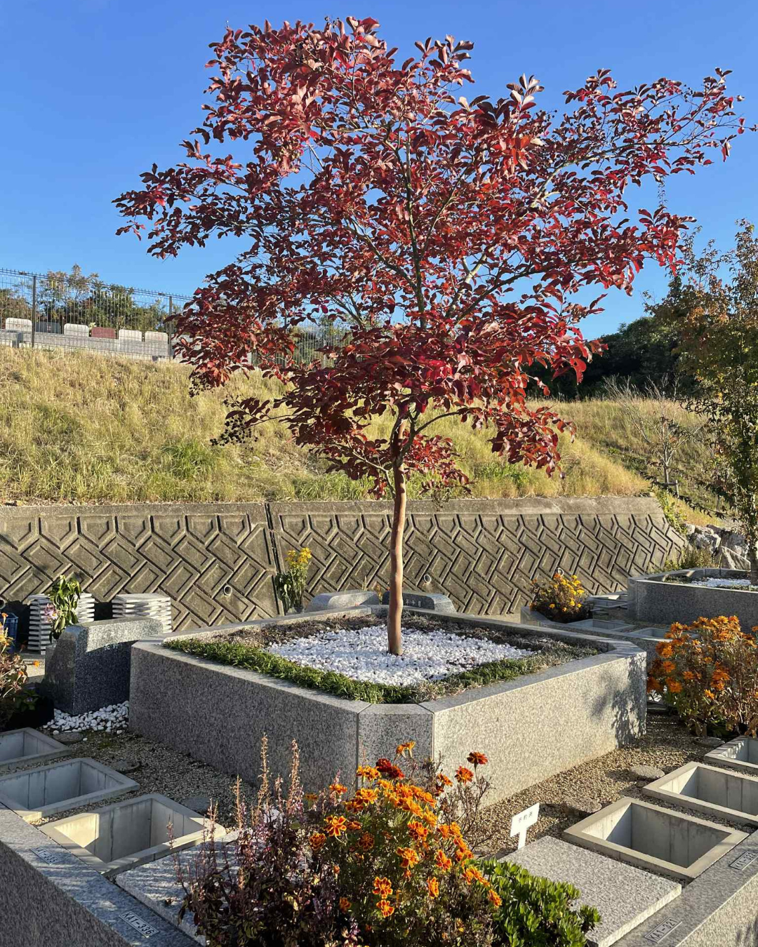 花壇墓所のシンボルツリーの樹木が、徐々に赤や黄色に色付いてまいりました。