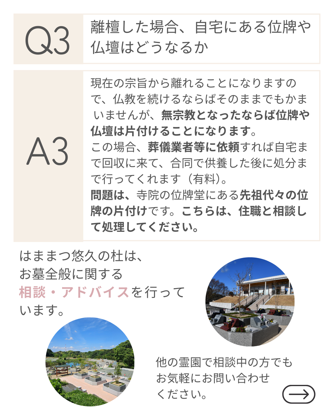 Q3:離檀した場合、自宅にある位牌や仏壇はどうなる?