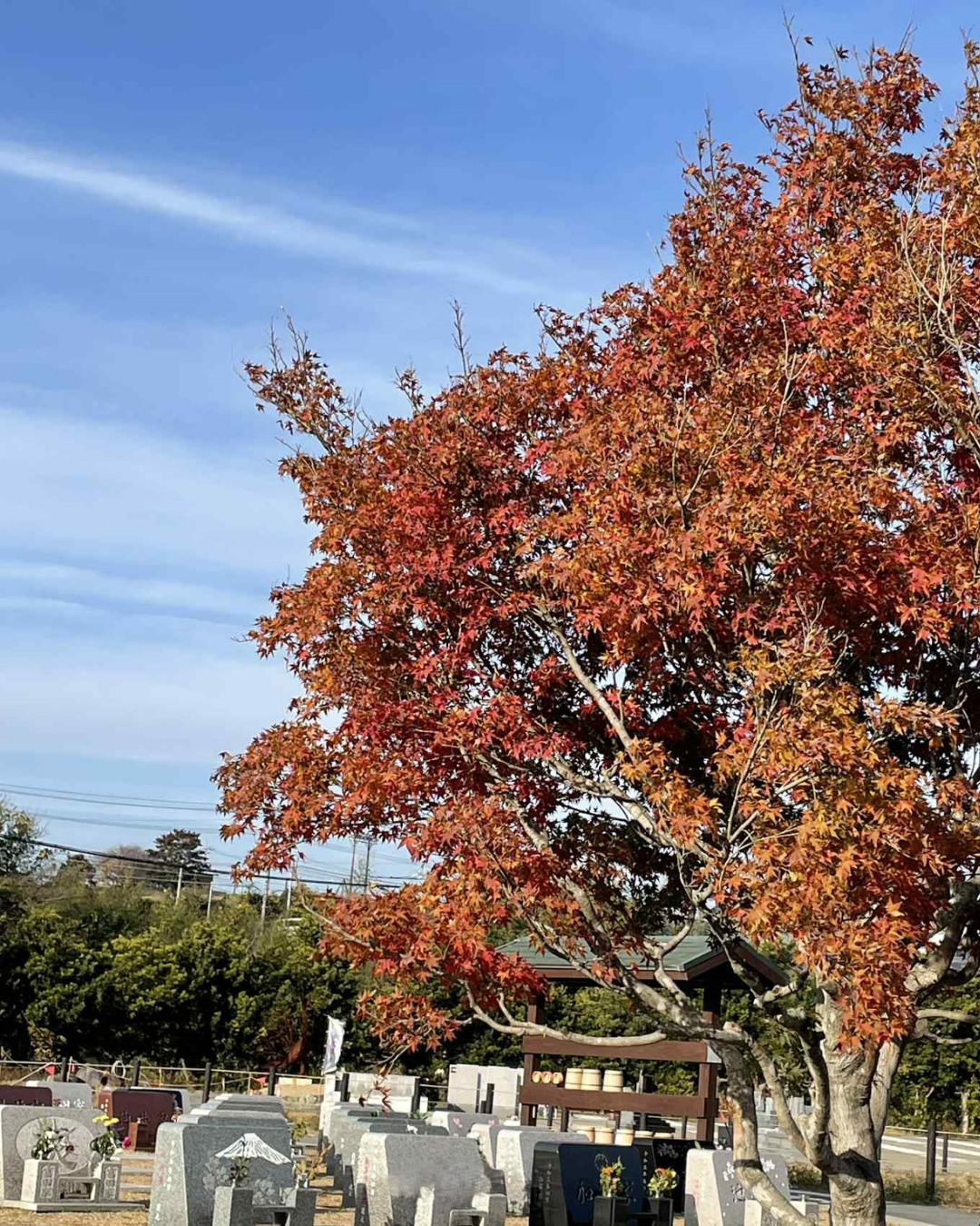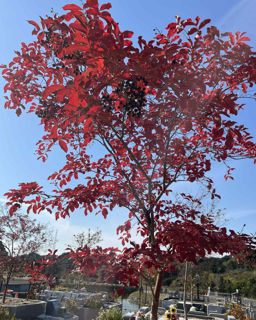 樹木墓所Aです。紅葉が赤く」色付いています!