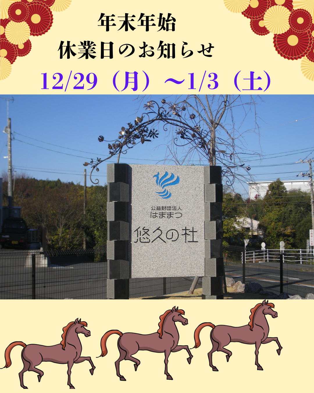 <はままつ悠久の杜管理事務所・年末年始休業日のお知らせ>
