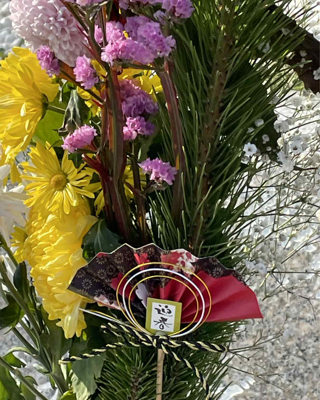 年末年始のお墓は、菊や松や千両・万両などのお花でいっぱいです。