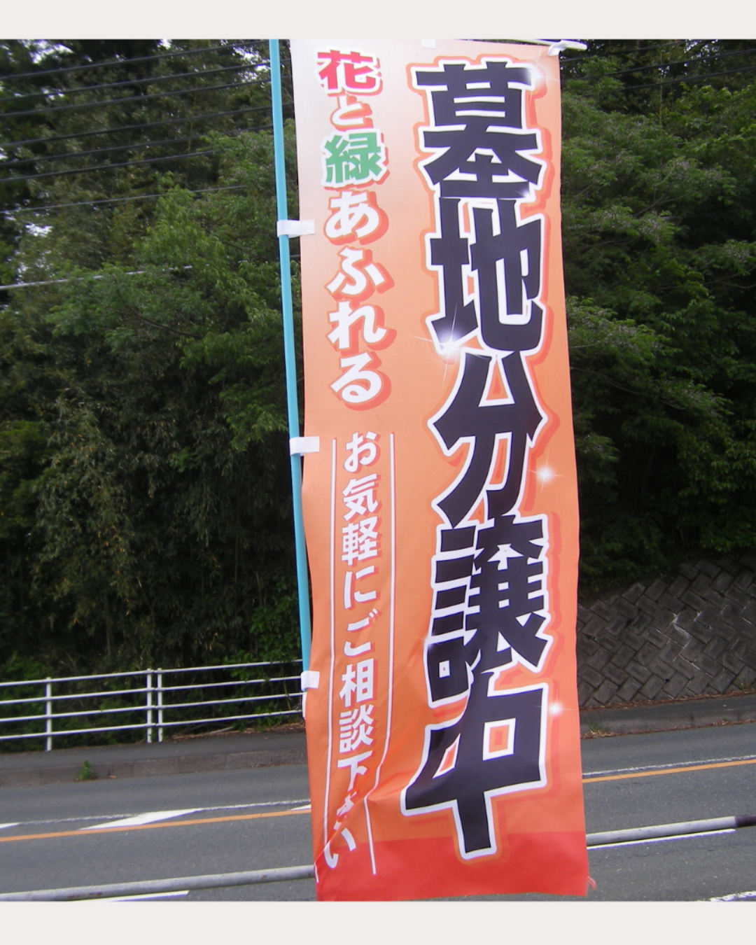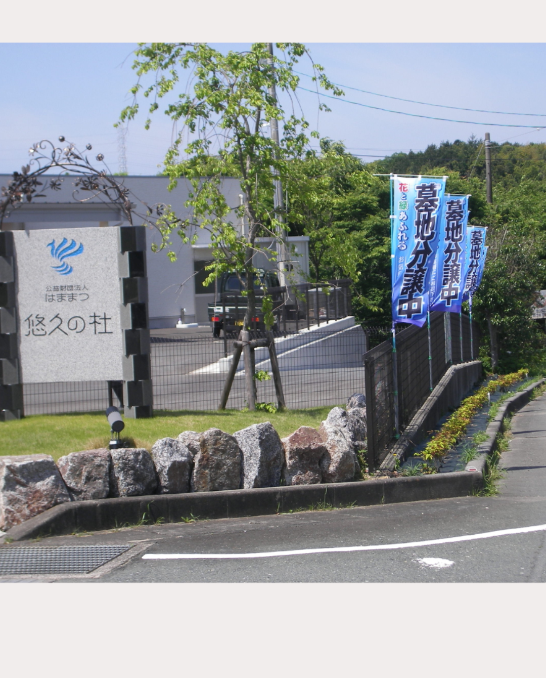 ② 左手に”墓地分譲中”ののぼり旗 →「はままつ悠久の杜」に到着!