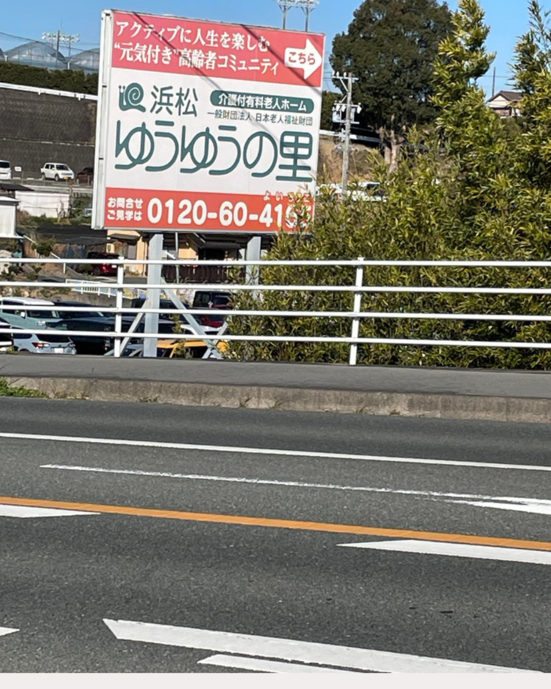 ① 左手に浜松ゆうゆうの里さんの看板 →向かい側が「はままつ悠久の杜」